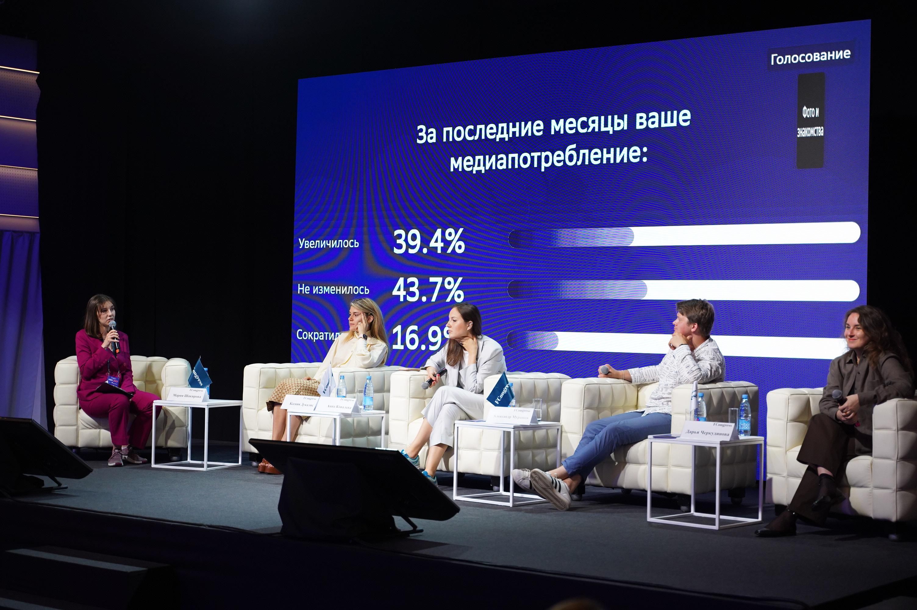 Анна Ковалёва рассказала о том, как развиваться блогосфере в сложившихся условиях: «мы сильно расширили количество услуг, которые предлагаем. И если раньше мы делали в основном подкасты, то теперь мы функционируем как полноценное контент-бюро. Мы стали соглашаться, мне кажется, на проекты, на которые в прошлой реальности мы бы не согласились. Но, наверное, вот если такой супер-общий совет — это искать какие-то новые ниши применения себя». Александр Мурашев добавил: «один из путей, который я сейчас и мы все с нашей небольшой командой для себя выработали, для себя определили, – это всё-таки какие-то нестыдные спецпроекты, это должно быть честно по отношению к зрителю в любом случае».