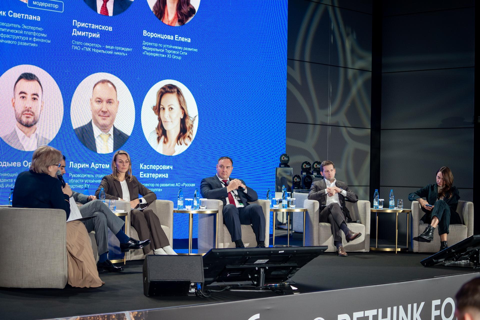 Обмен мнениями о трансформации целей устойчивого развития и новых точках опоры, а также о роли России в мировой ESG - повестке продолжили спикеры следующей сессии, в число которых вошли Светлана Бик, руководитель Экспертно-аналитической платформы «Инфраструктура и финансы устойчивого развития», Дмитрий Пристансков, статс-секретарь – вице-президент ПАО «ГМК Норильский никель», Елена Воронцова, директор по устойчивому развитию ФТС «Перекрёсток» X5 Group, Ораз Дурдыев, и.о. президента компании AB InBev Efes, Артем Ларин, партнер, руководитель отдела услуг в области устойчивого развития и чистых технологий в России Группы компаний Б1, и Екатерина Касперович, директор по развитию, Русская Медиагруппа.