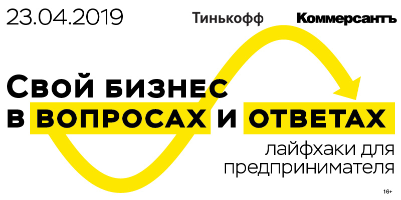 ИД «Коммерсантъ» и «Тинькофф» приглашают принять участие в конференции «Свой бизнес в вопросах и ответах. Лайфхаки для предпринимателя», которая состоится 23 апреля 2019 года по адресу: г. Москва, ул. Новый Арбат, 32, отель «Мариотт Новый Арбат», конференц-пространство «Высоцкий».