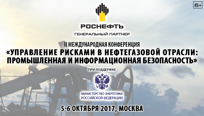5-6 октября 2017 г. в Москве в Конгресс-центре ТПП РФ при поддержке Министерства энергетики Российской Федерации, Комитета Государственной Думы ФС РФ по энергетике, Российского газового общества (РГО) и Национального союза страховщиков ответственности (НССО) состоится 2-я Международная Конференция «Управление рисками  в нефтегазовой  отрасли: промышленная и информационная безопасность». Генеральным партнером Конференции выступает ПАО «НК «Роснефть». Организатором является Фонд «Институт энергетики и финансов».