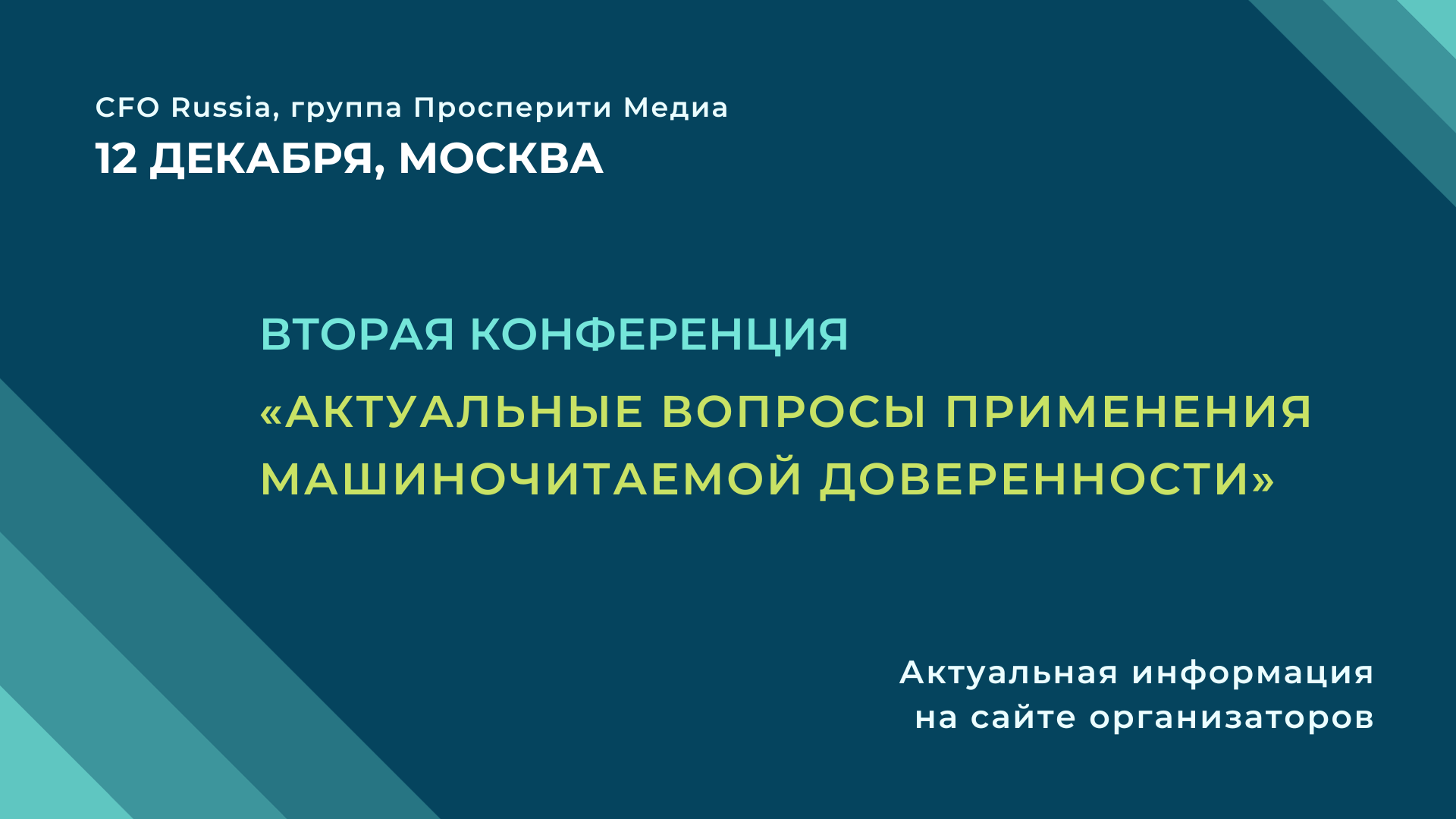 12 декабря в Москве пройдет Вторая конференция «Актуальные вопросы применения машиночитаемой доверенности», организованная группой «Просперити Медиа» и порталом CFO-Russia.ru.