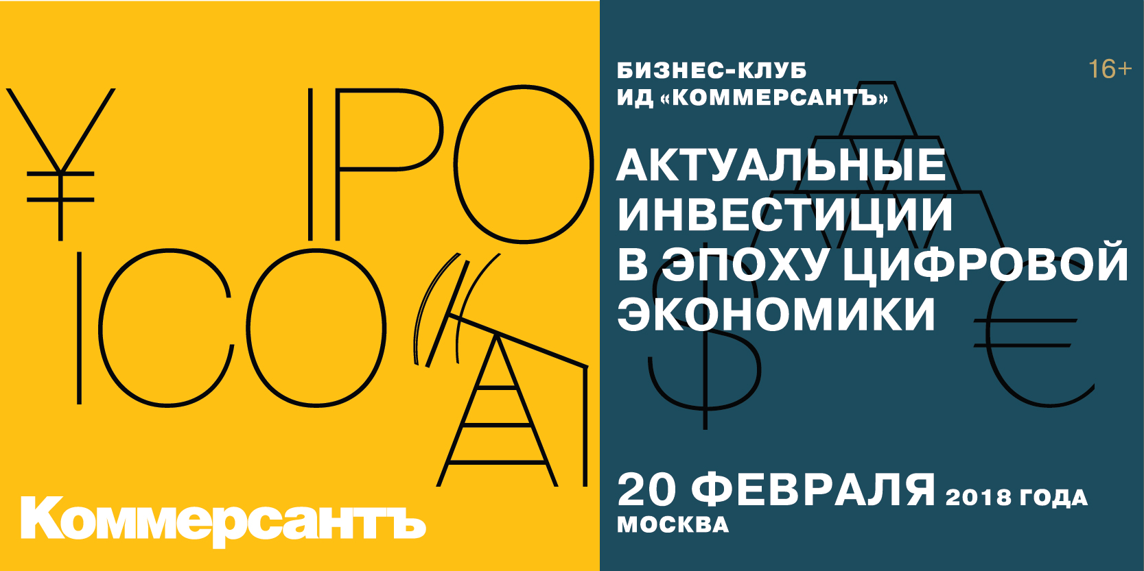 20 февраля в Москве состоится встреча Бизнес-клуба ИД «КоммерсантЪ» — «Актуальные инвестиции в эпоху цифровой экономики». Мероприятие пройдет в рамках международного конгресса Блокчейн.рф 2018.