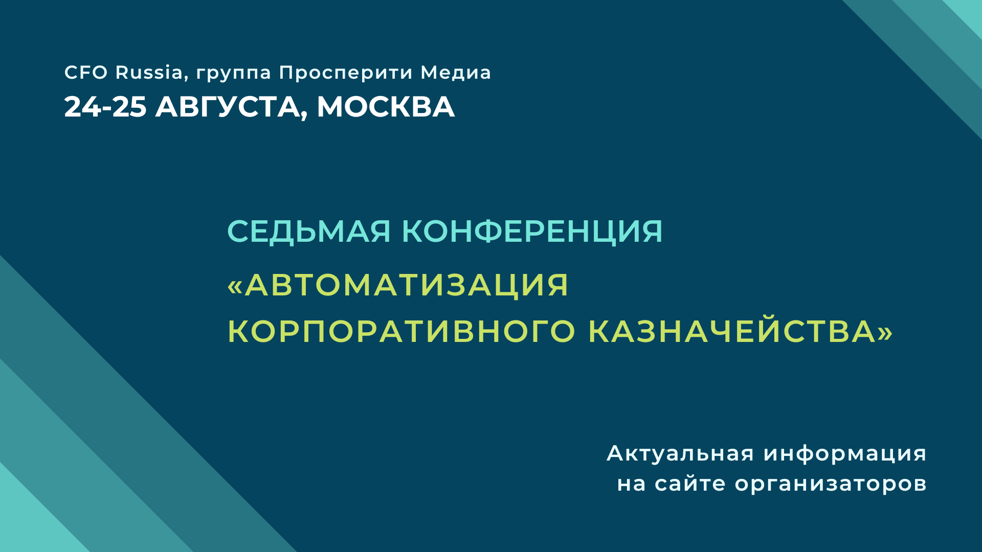 24-25 августа в Москве пройдет Седьмая конференция «Автоматизация корпоративного казначейства» организованная группой «Просперити Медиа» и порталом CFO-Russia.ru.