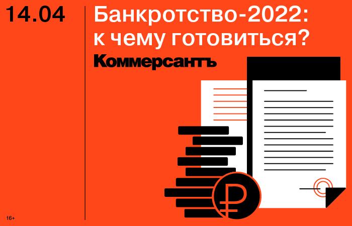 ИД «Коммерсантъ» рад пригласить вас принять участие в конференции «Банкротство-2022: к чему готовиться», которая состоится 14 апреля 2022г.