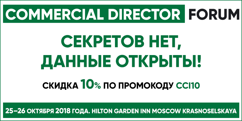 Commercial Director Forum 2018 – первый специализированный форум, который объединит на одной площадке коммерческих директоров и производителей в различных сферах ритейла. Регистрация уже открыта. Дарим скидку 10% по промокоду* CCI10.