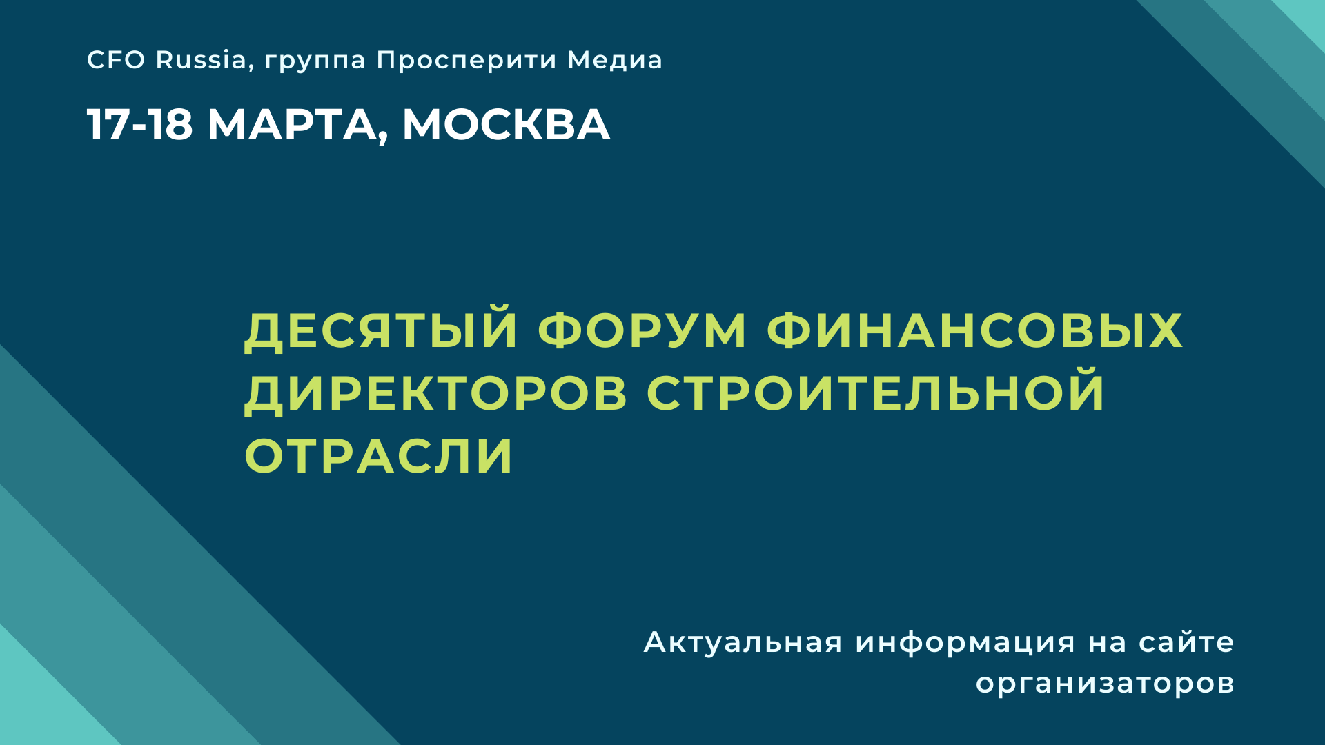 17-18 марта в Москве состоится Десятый Форум финансовых директоров строительной отрасли, организованный группой «Просперити Медиа» и порталом CFO-Russia.ru.