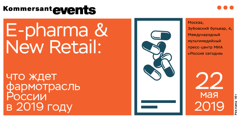 ИД «Коммерсантъ» приглашает на бизнес бранч «E-Pharma & New Retail – 2019», который состоится 22 мая 2019 года по адресу: г. Москва, Зубовский бульвар, 4, Международный мультимедийный пресс-центр МИА «Россия сегодня»