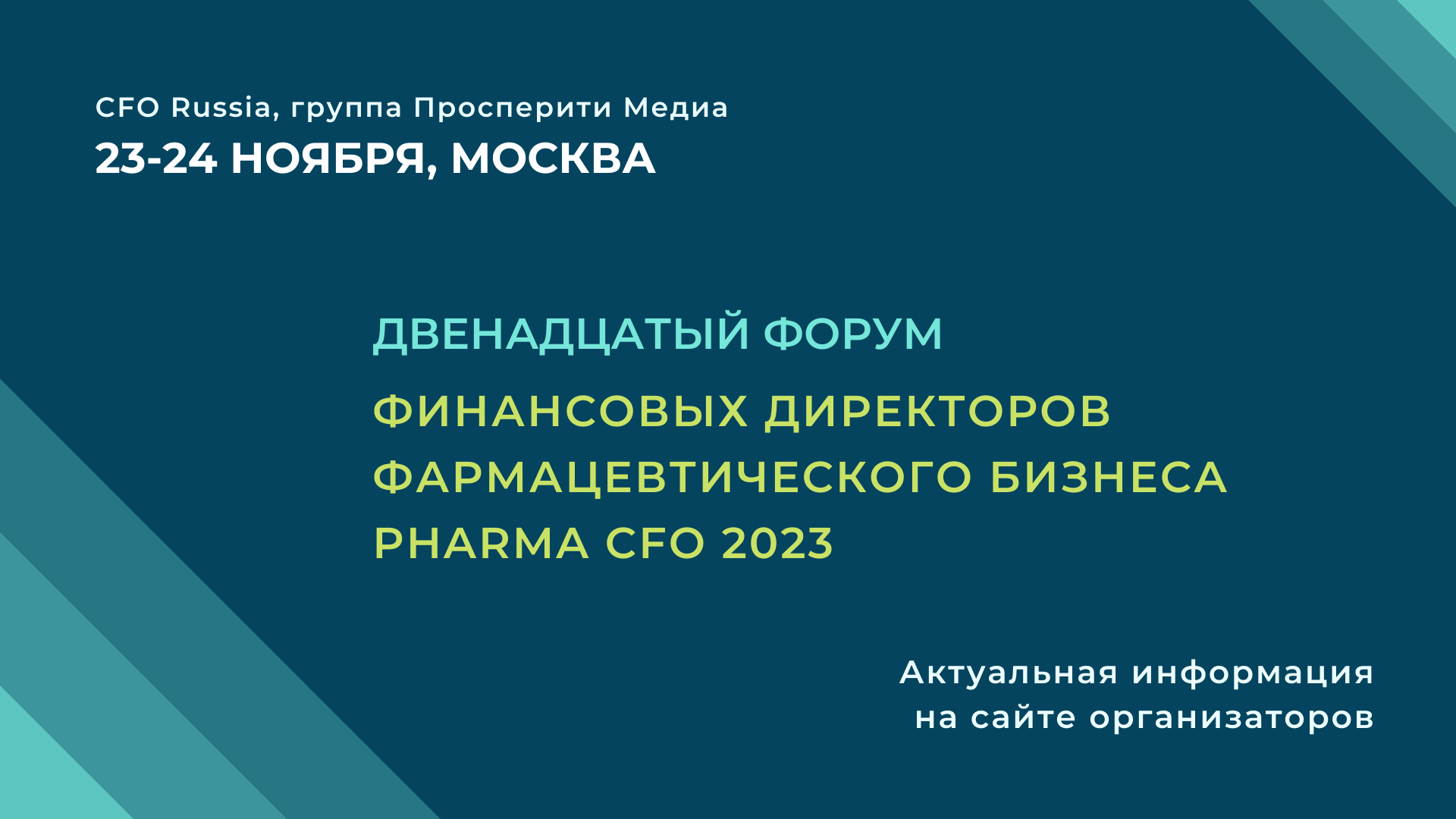 23-24 ноября в Москве пройдет Двенадцатый форум финансовых директоров фармацевтического бизнеса Pharma CFO 2023, организованный группой «Просперити Медиа» и порталом CFO-Russia.ru.