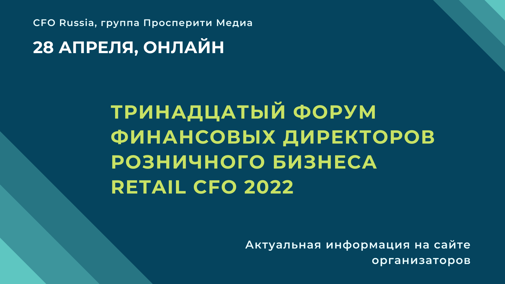 28 апреля в онлайн-формате пройдет Тринадцатый форум финансовых директоров розничного бизнеса Retail CFO 2022, организованный группой «Просперити Медиа» и порталом CFO-Russia.ru.