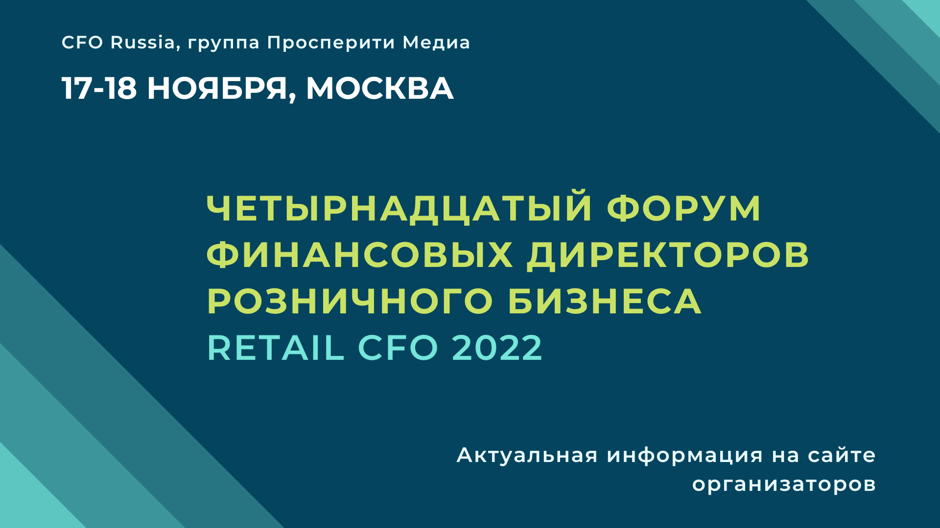 17-18 ноября в Москве пройдёт Четырнадцатый форум финансовых директоров розничного бизнеса Retail CFO 2022, организованный группой «Просперити Медиа» и порталом CFO-Russia.ru.