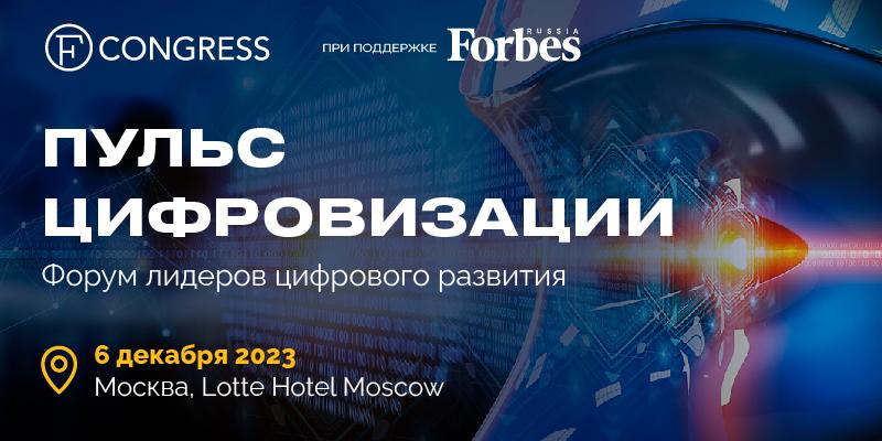 Приглашаем на IV ежегодный форум лидеров цифрового развития «Пульс цифровизации», который состоится 6 декабря в Lotte Hotel Moscow. FCongress при поддержке Forbes Russia объединит ведущих игроков цифрового рынка, топ-менеджмент инновационных компаний, телеком, медиа, e-commerce, финтех, ритейл, IT, операторов связи, банки, промышленные и производственные компании, инвестирующие в скорость, интеллект, технологии, способные трансформировать мир.