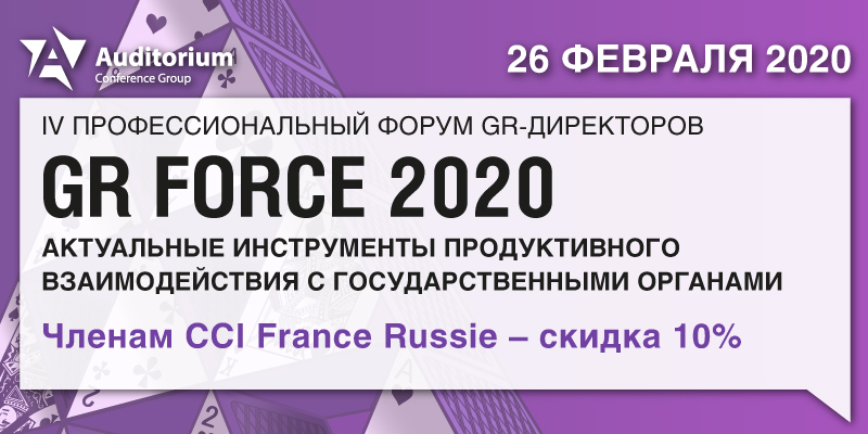 Мы приглашаем вас на «GR Force 2020. Актуальные инструменты продуктивного взаимодействия с государственными органами» — Единственный независимый форум экспертов по работе с государственными органами, 26 февраля 2020 г. На форуме встретятся представители разных отраслей и поделятся опытом о том, какие инструменты наиболее эффективны. Это уникальная возможность оценить свой опыт и применить новые подходы из арсенала коллег.