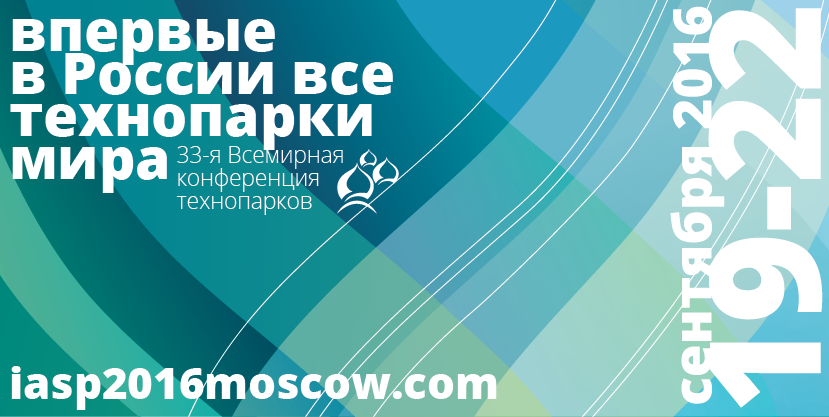 С 19 по 22 сентября 2016 года в Москве пройдет 33-я Всемирная конференция IASP (International Association of Science Parksand Areas of Innovation) Международной ассоциации технопарков и зон инновационного развития. Впервые в Москве соберутся ведущие международные эксперты по формированию эффективной инновационной инфраструктуры и занимающиеся выводом на международные рынки технологичных стартап-компаний.