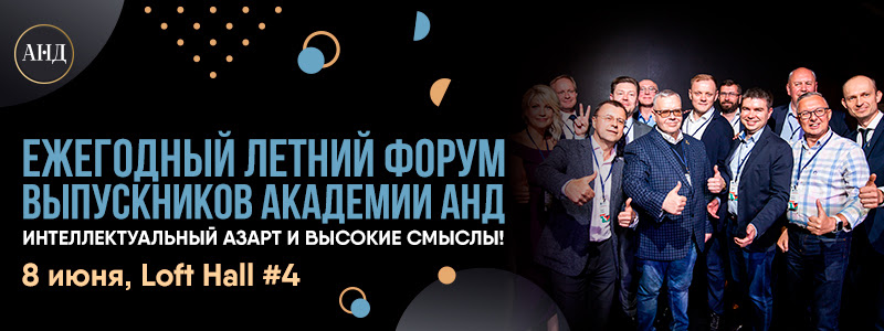 Дорогие друзья! 8 июня ждём вас на IV Летнем Форуме Академии АНД. На Форуме соберутся более 350 топ-менеджеров и собственников крупнейших российских и международных компаний.