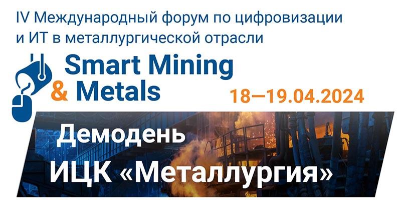 18–19 апреля 2024 г. состоится IV Международный форум по цифровизации и ИТ в металлургической отрасли Smart Mining & Metals. В рамках форума 18 апреля пройдет демодень ИЦК «Металлургия».