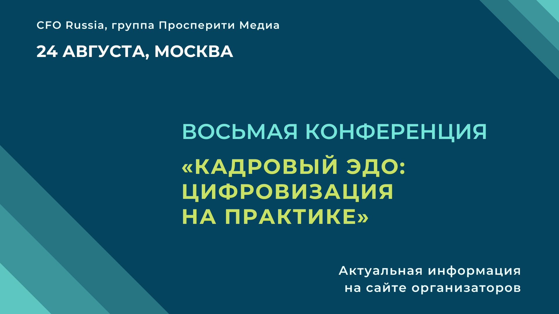 24 августа в Москве состоится Восьмая конференция «Кадровый ЭДО: цифровизация на практике», организованная группой «Просперити Медиа» и порталом CFO-Russia.ru.