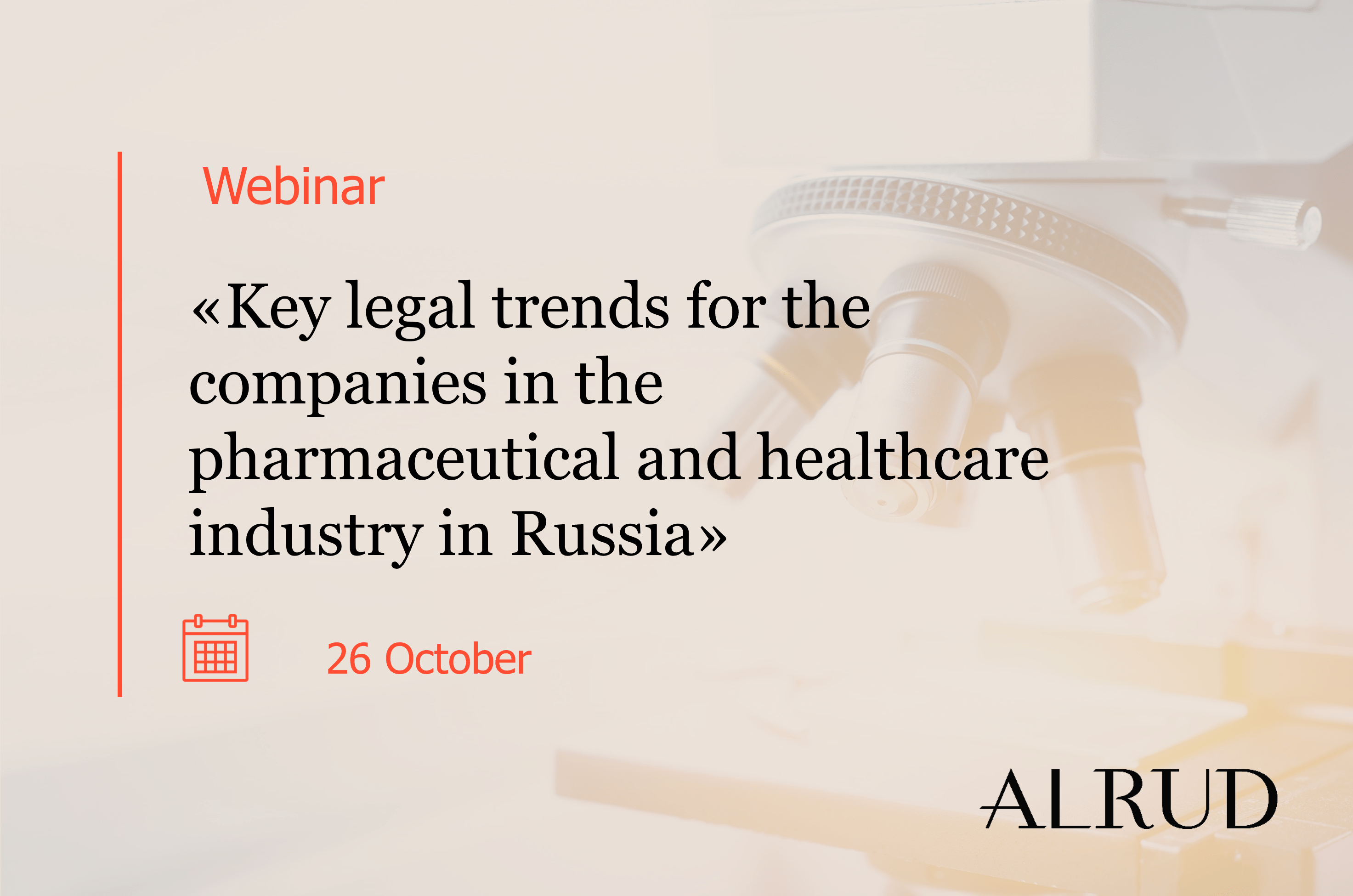 ALRUD Law Firm invites you to take part in our webinar dedicated to the current legal trends and regulatory changes in the pharmaceutical and healthcare industry, which companies may face in Russia: