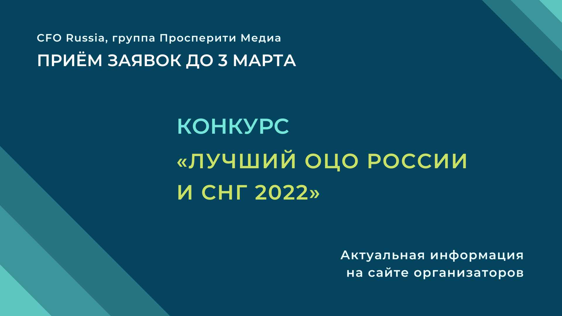 С 12 декабря по 23 марта группа «Просперити Медиа» и портал CFO Russia проводят Конкурс и премию «Лучший ОЦО России и СНГ 2022».
