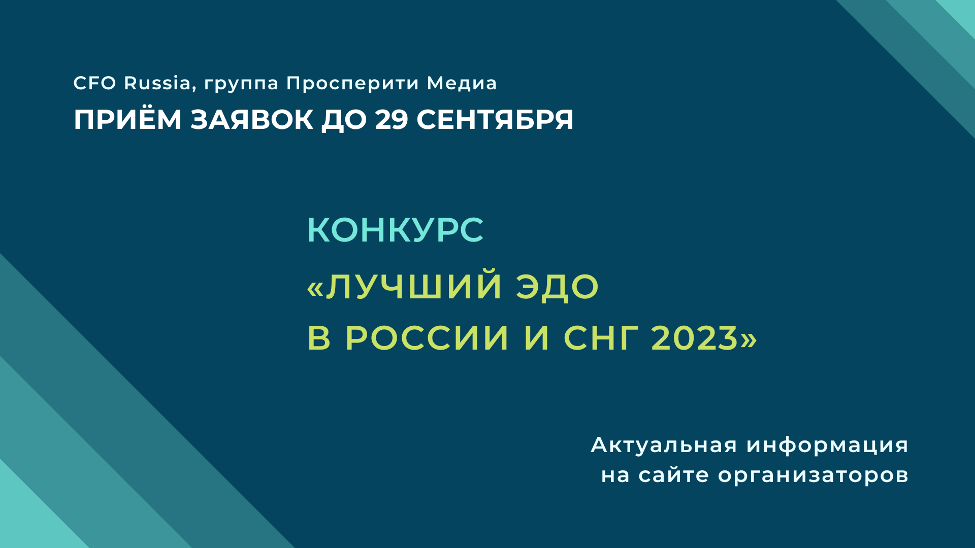 С 1 июля по 19 октября в Москве пройдет Конкурс «Лучший ЭДО в России и СНГ 2023» организованный группой «Просперити Медиа» и порталом CFO-Russia.ru.