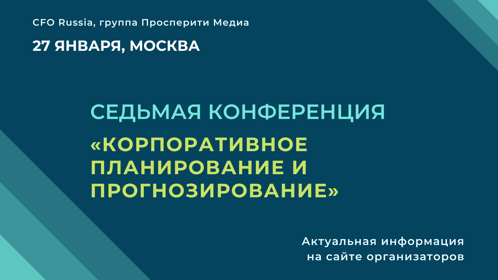 27 января в Москве состоится Седьмая конференция «Корпоративное планирование и прогнозирование», организованная группой «Просперити Медиа» и порталом CFO-Russia.ru.