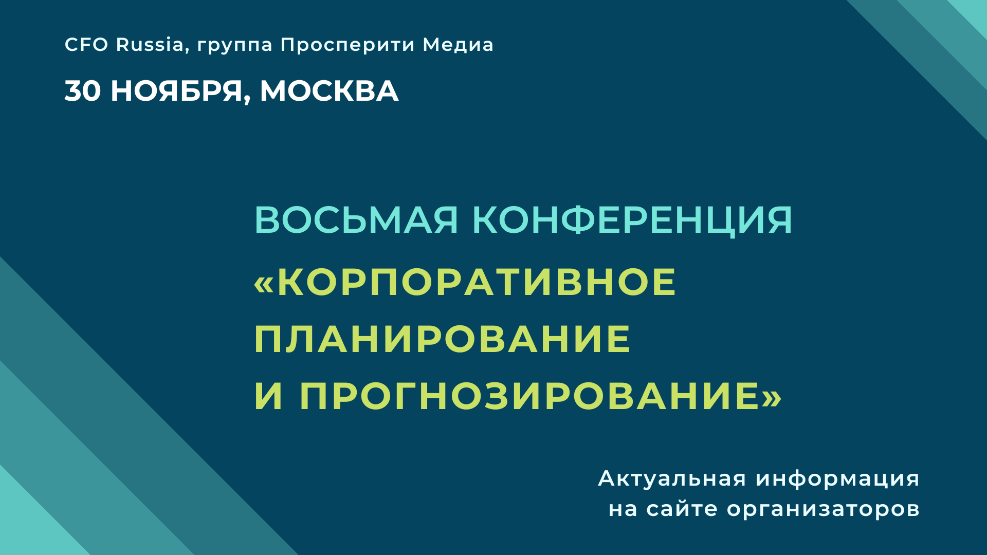 30 ноября в Москве пройдет Восьмая конференция «Корпоративное планирование и прогнозирование», организованная группой «Просперити Медиа» и порталом CFO-Russia.ru.