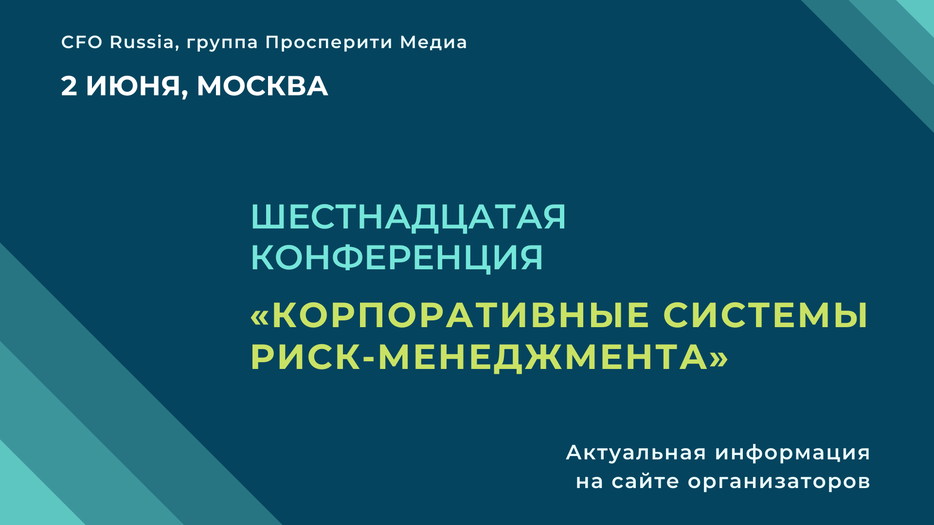 2 июня в Москве состоится Шестнадцатая конференция «Корпоративные системы риск-менеджмента», организованная группой «Просперити Медиа» и порталом CFO-Russia.ru.