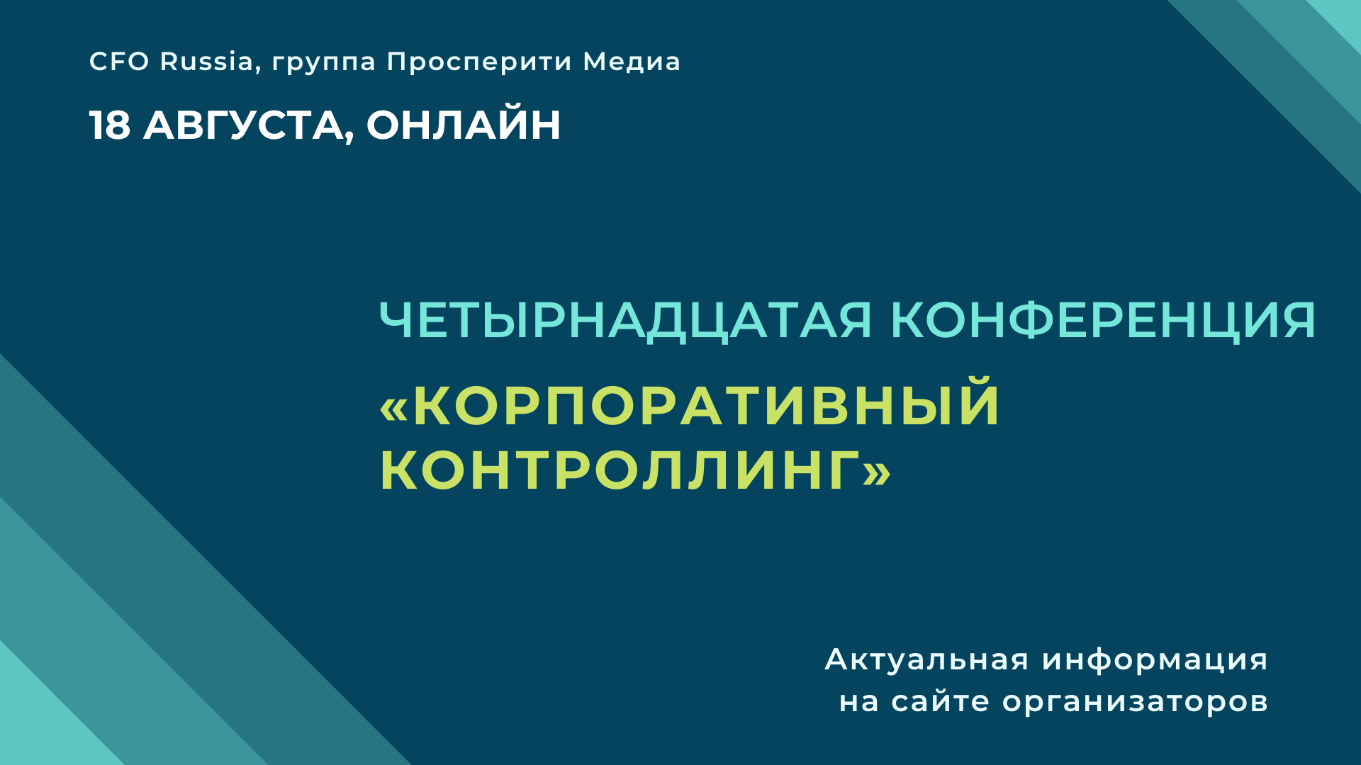 18 августа в онлайн-формате состоится Четырнадцатая конференция «Корпоративный контроллинг», организованная группой «Просперити Медиа» и порталом CFO-Russia.ru.