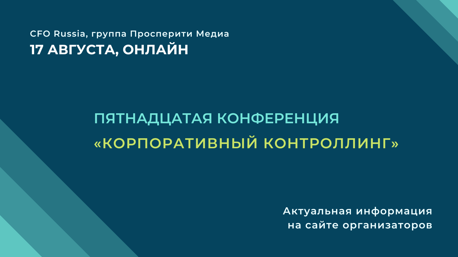 17 августа в онлайн формате пройдет Пятнадцатая конференция «Корпоративный контроллинг» организованная группой «Просперити Медиа» и порталом CFO-Russia.ru.