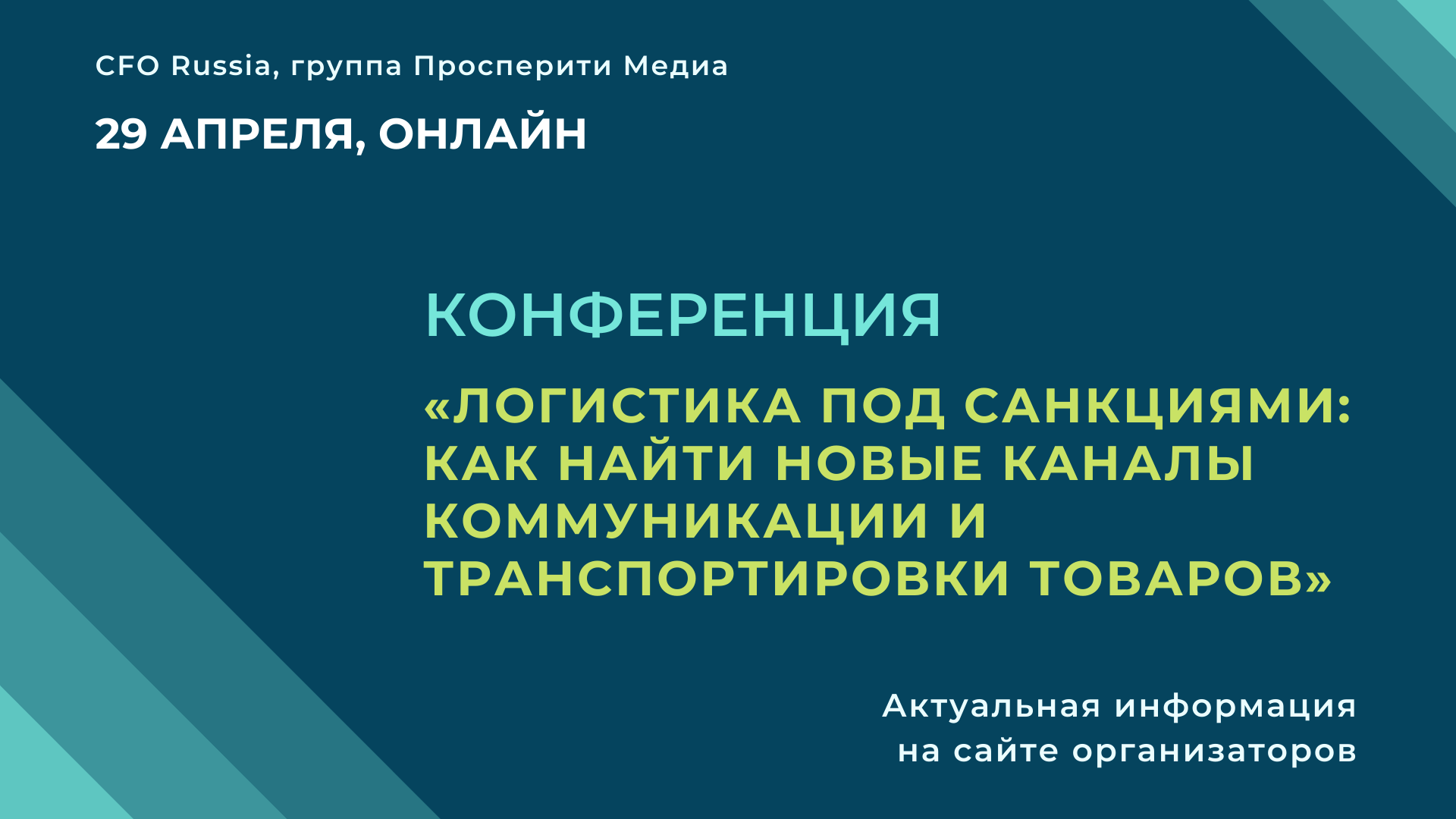 29 апреля в онлайн-формате пройдет Конференция «Логистика под санкциями: как найти новые каналы коммуникации и транспортировки товаров», организованная порталом CFO-Russia.ru, состоится 29 апреля 2022 года.