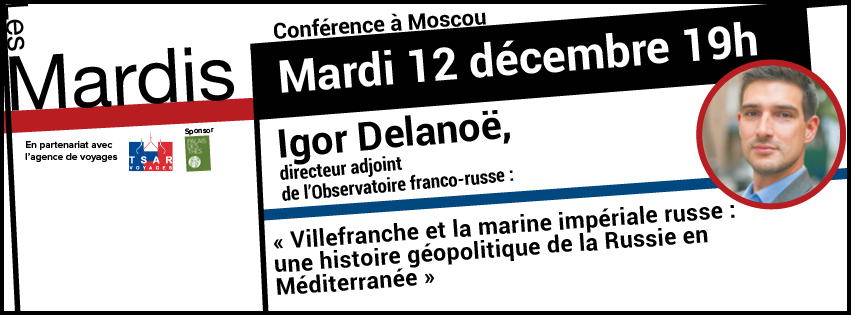 Mardi 12 décembre, à 19h, Igor Delanoё, directeur adjoint de l’Observatoire franco-russe, donnera dans le cadre des Mardis une conférence sur le thème : » Villefranche et la marine impériale russe : une histoire géopolitique de la Russie en Méditerranée «.
