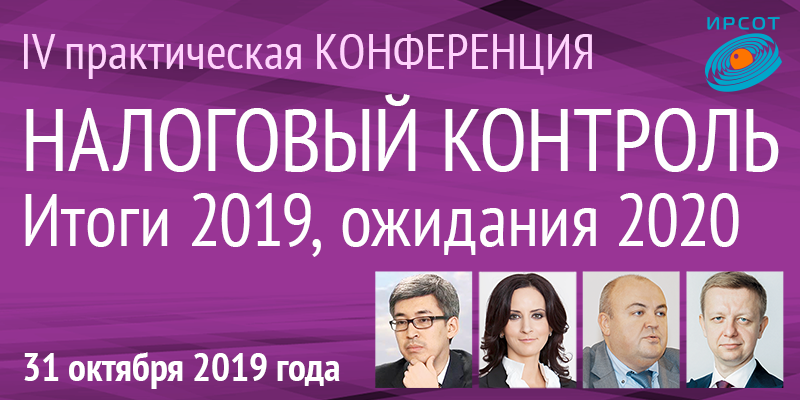 Важные вопросы обсуждаем 31 октября 2019 года в отеле Ararat Park Hyatt Moscow на IV практической конференции ИРСОТ «Налоговый контроль. Итоги 2019, ожидания 2020».
