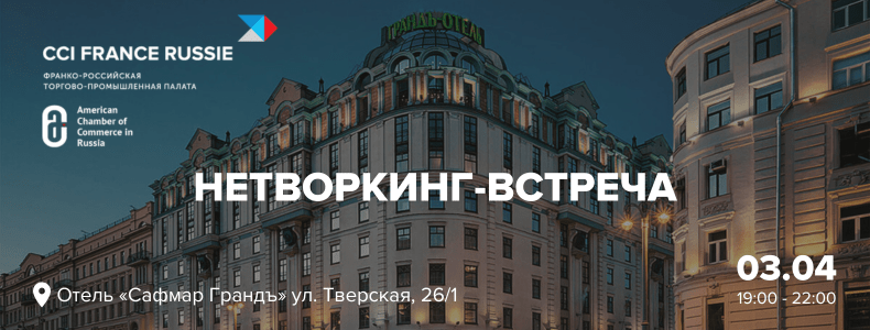 Франко-российская торгово-промышленная палата (CCI France Russie) и Американская торговая палата (AmCham) приглашают на деловую нетворкинг-встречу, которая состоится 3 апреля в Москве, в отеле «Сафмар Грандъ».