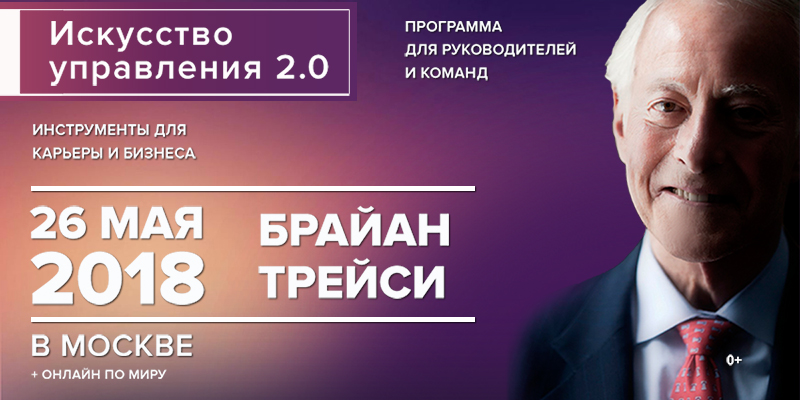 26 мая 2018 г. в Москве и онлайн по всему миру эксперт №1 в мире по успеху и развитию бизнеса, Брайан Трейси впервые в России проведет новую авторскую программу «Искусство управления 2.0: система действий и инструментов для руководителя и его команды».
