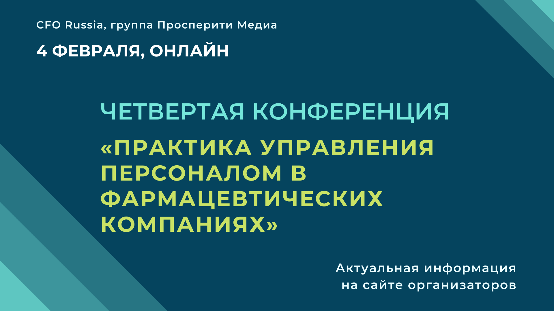 4 февраля состоится Четвертая конференция «Практика управления персоналом в фармацевтических компаниях», организованная группой «Просперити Медиа» и порталом CFO-Russia.ru.