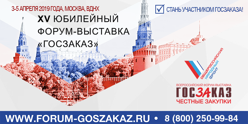 Самое крупное мероприятие федерального уровня в сфере закупок — XV Юбилейный Всероссийский Форум-выставка «ГОСЗАКАЗ» состоится 3-5 апреля 2019 г. в Москве, на ВДНХ, в 75-м павильоне. Единственная в России дискуссионная и выставочная площадка федерального значения в области государственных, муниципальных и корпоративных закупок традиционно объединит всех участников рынка: заказчиков, регуляторов, поставщиков, подрядчиков и исполнителей.