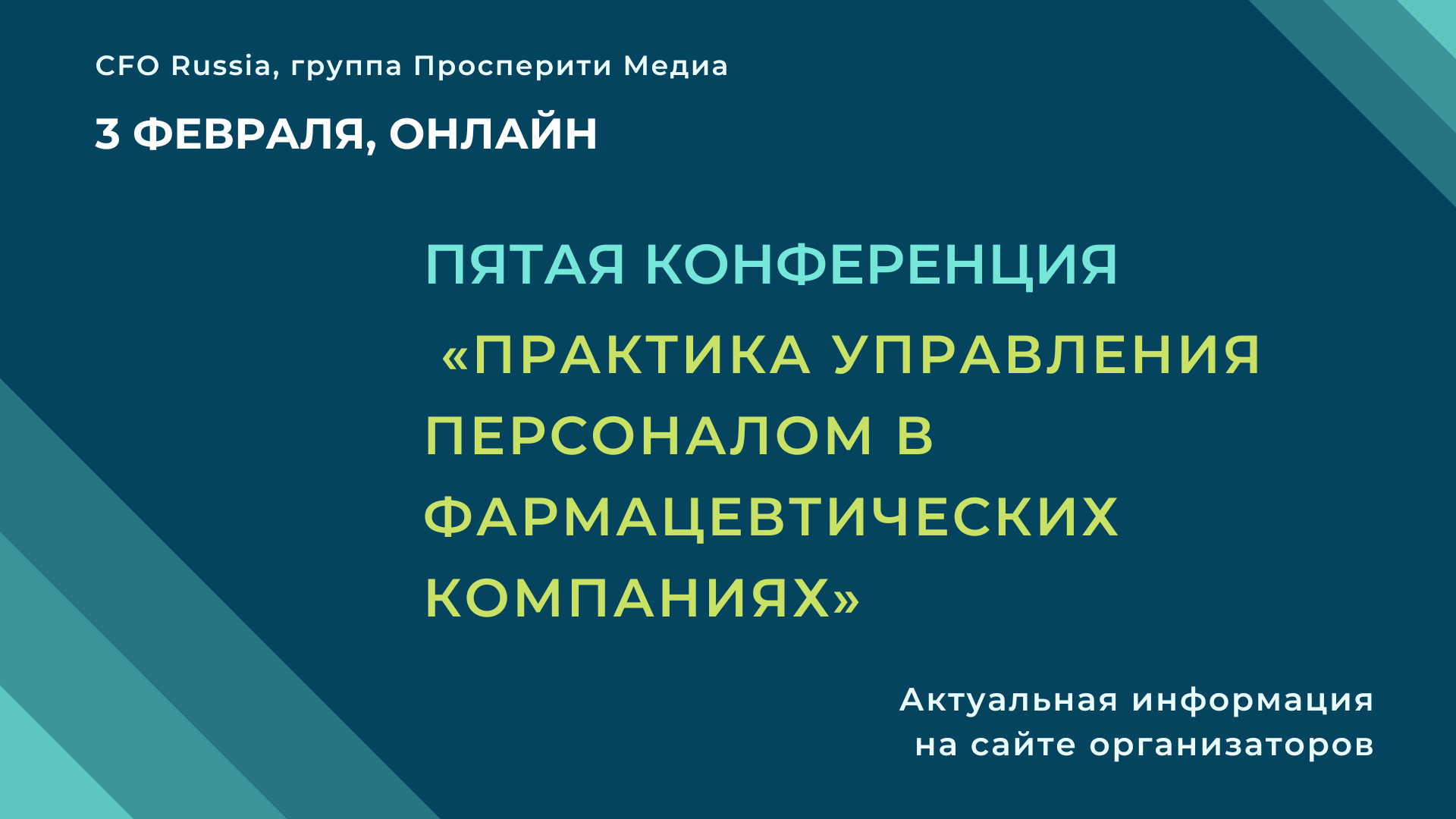 3 февраля пройдет онлайн Конференция «Практика управления персоналом в фармацевтических компаниях» организованная группой «Просперити Медиа» и порталом CFO-Russia.ru.