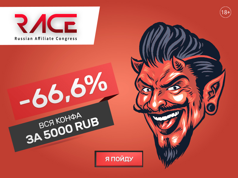 Крупнейшая в СНГ площадка для презентации последних разработок в сфере партнерского маркетинга. RACE 2017 соберет более 20 топовых игроков российского и европейского рынка и амбициозных новичков.