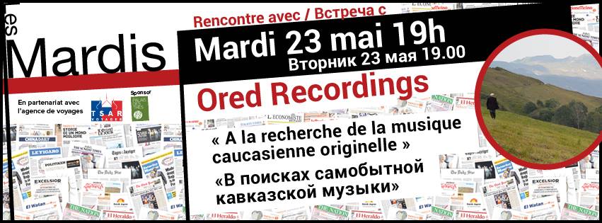 Mardi 23 mai à 19h, les créateurs du label Ored Recordings donneront une conférence sur le thème : « A la recherche de la musique caucasienne originelle ».