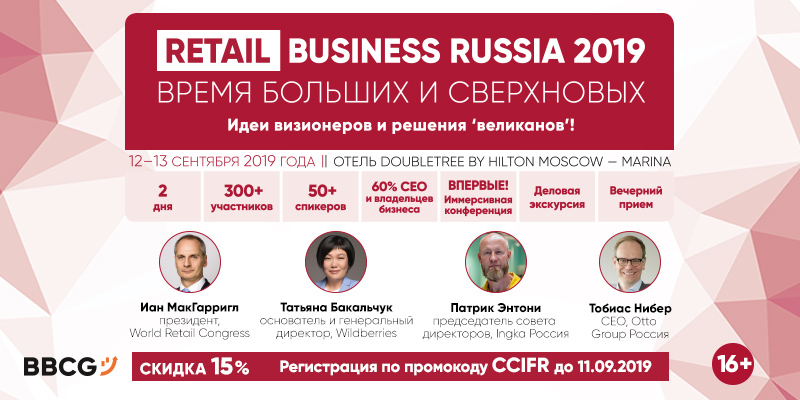 12 и 13 сентября в Москве состоится главное мероприятие этого года в розничной торговле — XIX Международный саммит индустрии RETAIL BUSINESS RUSSIA 2019! Площадка отеля Double Tree by Hilton Moscow—Marina объединит более 500 участников и 50 спикеров: топ-менеджеров и основателей розничных сетей, первых лиц мультиканальных ритейлеров, интернет-магазинов и маркетплейсов, производителей и поставщиков в различных сегментах розничной торговли.