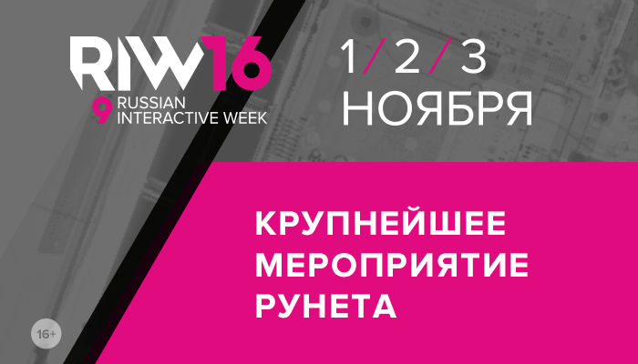 Главное событие отрасли высоких технологий — 9-й Russian Interactive Week (RIW) — пройдет 1–3 ноября 2016 года в московском Экспоцентре (8 павильон). Организаторами выступают РАЭК и РОЦИТ при поддержке Минсвязь России, МКС, ИРИ.