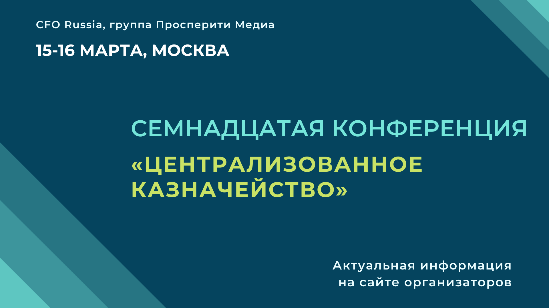 15-16 марта в Москве состоится Семнадцатая конференция «Централизованное казначейство», организованная группой «Просперити Медиа» и порталом CFO-Russia.ru.