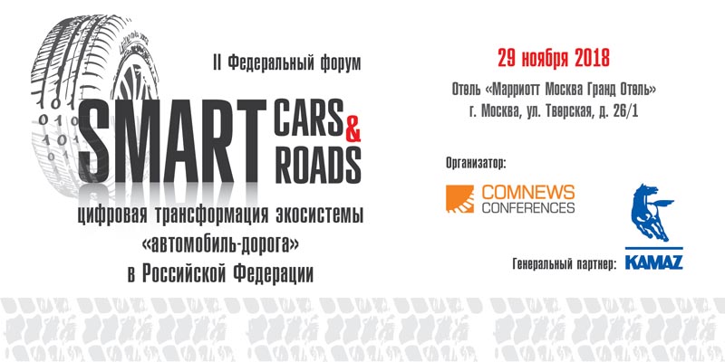 Информационно-издательская группа ComNews в партнерстве с ПАО «КАМАЗ» приглашает Вас и Ваших коллег принять участие в масштабном отраслевом мероприятии – II Федеральном форуме «Smart Cars & Roads – цифровая трансформация экосистемы «автомобиль-дорога» в Российской Федерации».