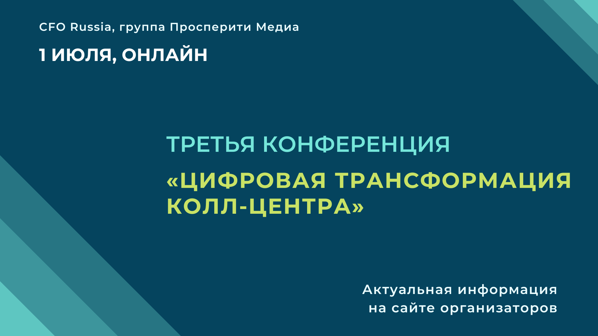 1 июля в онлайн-формате состоится Третья конференция «Цифровая трансформация колл-центра», организованная группой «Просперити Медиа» и порталом CFO-Russia.ru.
