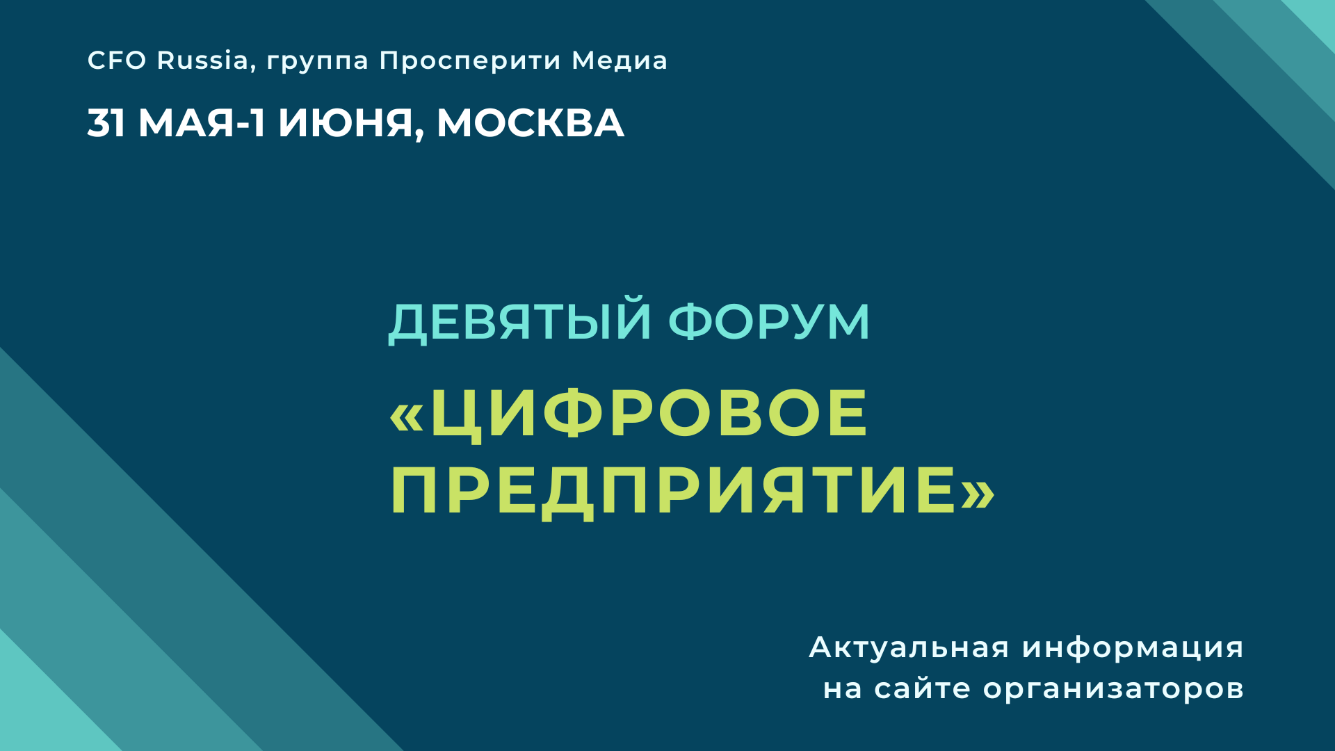 31 мая-1 июня в Москве пройдет Девятый форум «Цифровое предприятие», организованный группой «Просперити Медиа» и порталом CFO-Russia.ru.