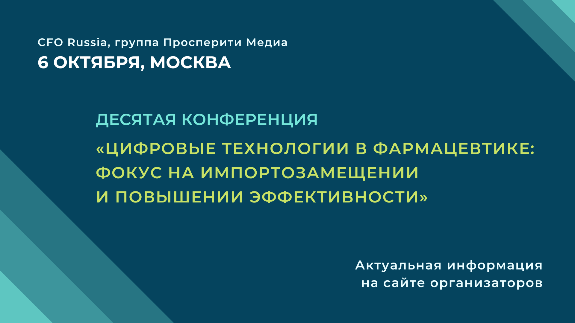6 октября в Москве пройдет Десятая конференция «Цифровые технологии в фармацевтике: фокус на импортозамещении и повышении эффективности» организованная группой «Просперити Медиа» и порталом CFO-Russia.ru.
