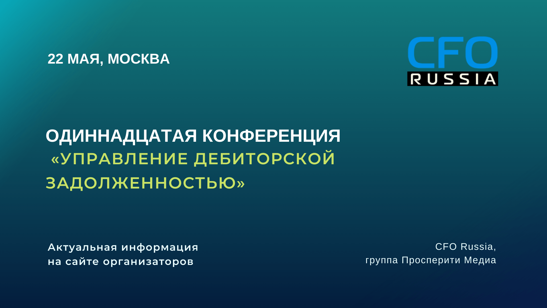 22 мая, в Москве состоится Одиннадцатая конференция «Управление дебиторской задолженностью», организованная группой «Просперити Медиа» и порталом CFO-Russia.ru