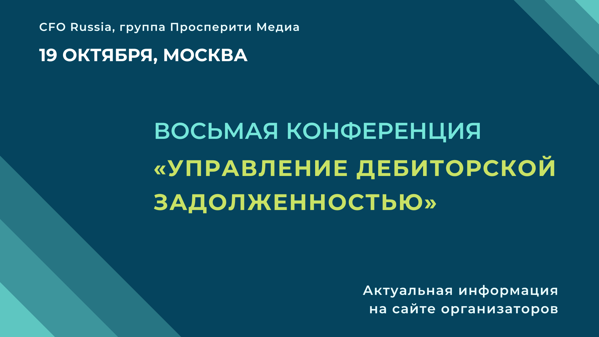 19 октября в Москве пройдёт Восьмая конференция «Управление дебиторской задолженностью», организованная группой «Просперити Медиа» и порталом CFO-Russia.ru.