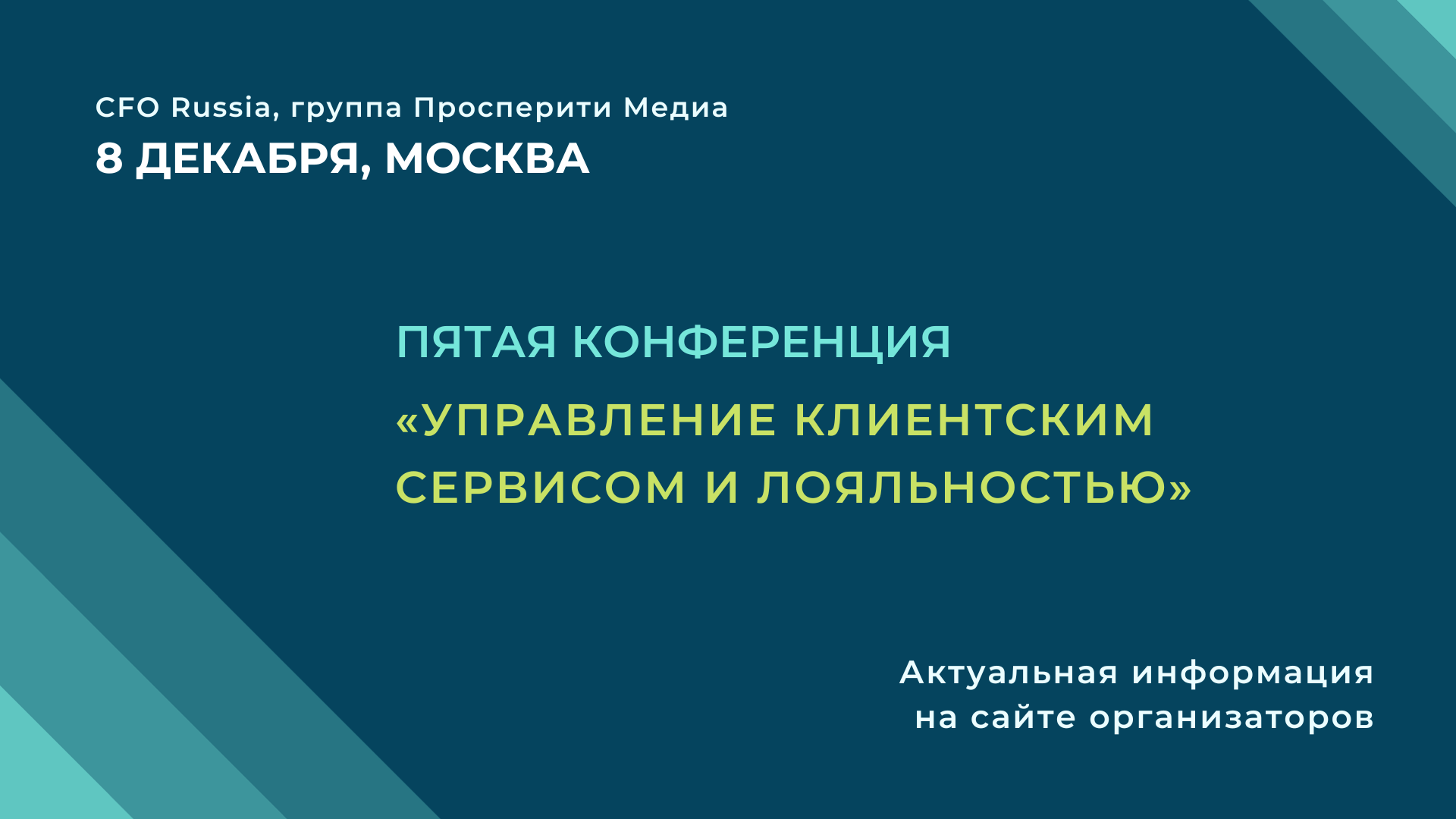 8 декабря в Москве пройдет Пятая конференция «Управление клиентским сервисом и лояльностью» организованная группой «Просперити Медиа» и порталом CFO-Russia.ru.