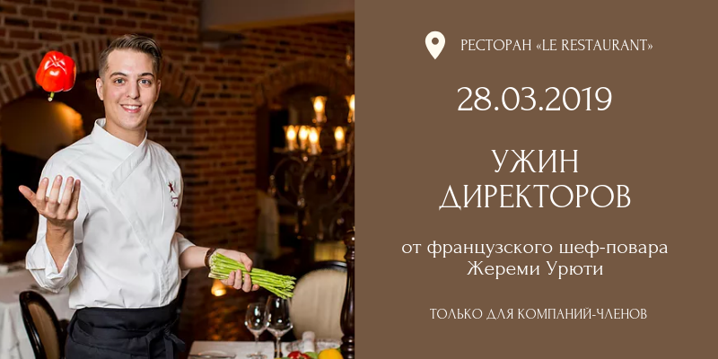 Франко-российская ТПП (CCI France Russie) организует ужины для директоров компаний-членов. Это уникальная возможность совместить гастрономический ужин от французского шеф-повара, отмеченного гидом Gault et Millau, и общение с топ-менеджментом компаний.