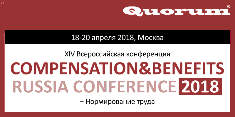 18-20 апреля 2018 в Москве состоится XIV Всероссийская конференция COMPENSATION&BENEFITS RUSSIA CONFERENCE 2018 + Нормирование труда для Специалистов по HR и С&B. Организатор – компания Quorum.